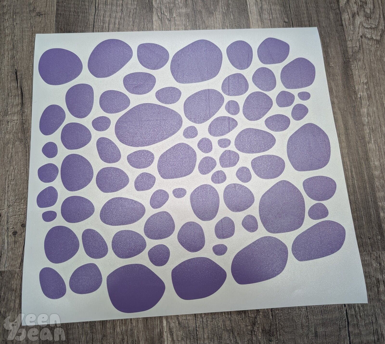 Comes with 69 varied sizes of odd shaped spots. Would be cut down to fit as sheets for packaging if needed.